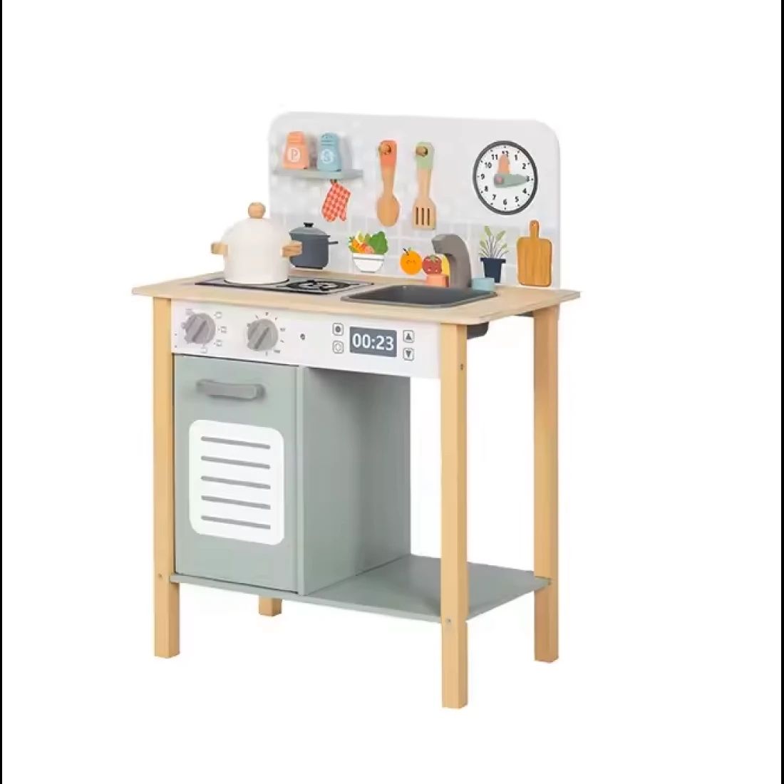Kuchynka má všetko, čo malý kuchár potrebuje – rúru, drez s kohútikom, hodiny aj úložný priestor. Súčasťou balenia sú aj drevené doplnky ako hrniec a kuchynské náčinie, vďaka ktorým môže hra začať hneď po rozbalení.