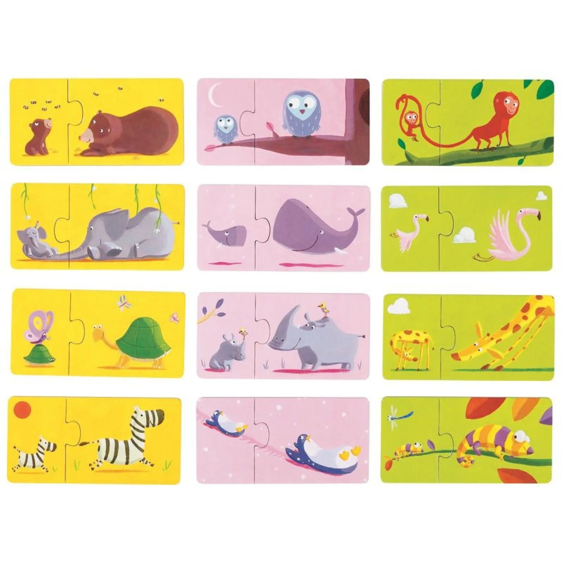 Puzzle duo Mláďatká sú prvé dvojdielne puzzle pre deti od 2 rokov, ktoré učia priraďovať mamičku a mláďa. Podporujú jemnú motoriku, slovnú zásobu a chápanie súvislostí hravou formou.