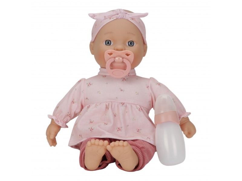 Novinkou od značky Little dutch je krásná bábika - bábätko, ktoré sa deti môžu starať. Môžu ju prezliekať, kŕmiť fľaštičkou, utíšiť cumlíkom. Bábika má ružovú tuniku a čelenku, a rebrované nohavice. Cumlík a fľaštička sú súčasťou balenia. K bábike sa dá dokúpiť kočiarik, postieľka aj ďalšie oblečenie.