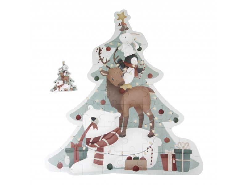 Užite si spolu so svojimi deťmi špeciálne vianočné puzzle! Veľké diely zložíte do obrovského 93 cm vysokého tvaru vianočného stromčeka s krásnymi ilustráciami soba, zajačika a ich priateľov. Puzzle môžu byť vianočným darčekom alebo zábavou, ktorú si spoločne užijete pri tešení sa na Vianoce.