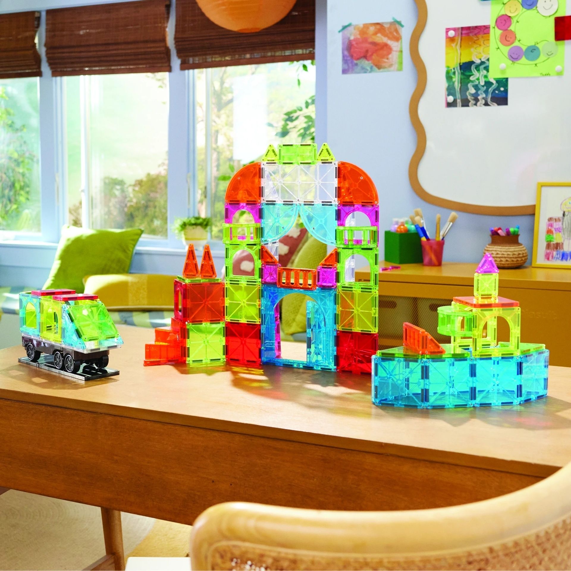 S magnetickou stavebnicou MAGNA-TILES® City Center sa deti ocitnú v pulzujúcom svete fantázie, kde si môžu vytvoriť všetko – od ulíc a domov až po schody, balkóny a autá. Táto jedinečná magnetická stavebnica pre deti od 3 rokov spája učenie a hru do nezabudnuteľného dobrodružstva.