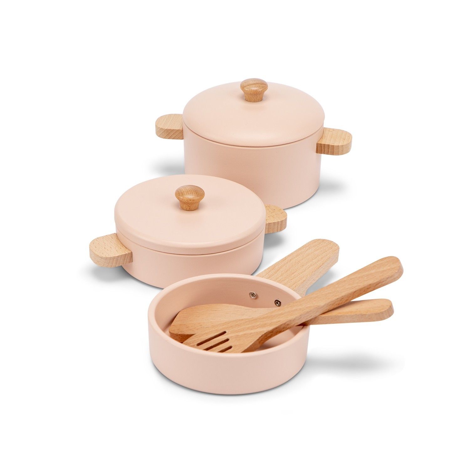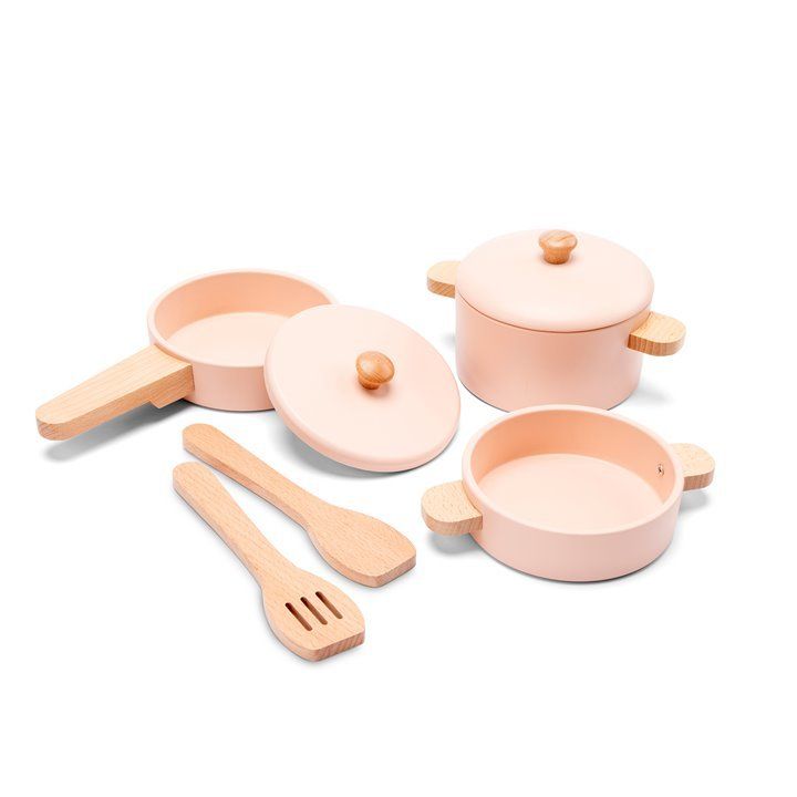 Sada drevených hrncov a panvice - ružová