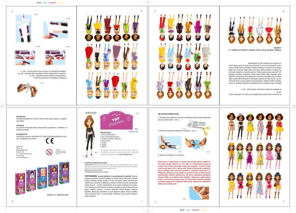 Vystrihni a priprav oblečenie, z ktorého môžeš vytvoriť rôzne módne kreácie - od tých elegantných až po veľmi originálne či až zábavné. Zostavené módne kreácie sa dajú na modelke pomocou obojstrannej pásky ľahko upevniť a meniť. Oblečenie môžeš doladiť rôznymi doplnkami, ktoré sú umiestnené na samolepiacom papieri, je to len na tvojej fantázii. Keď modelku zvisle postavíš, bude dobre viditeľná a jej módne oblečenie razom vynikne! Fantazíruj, tvor a skladaj.