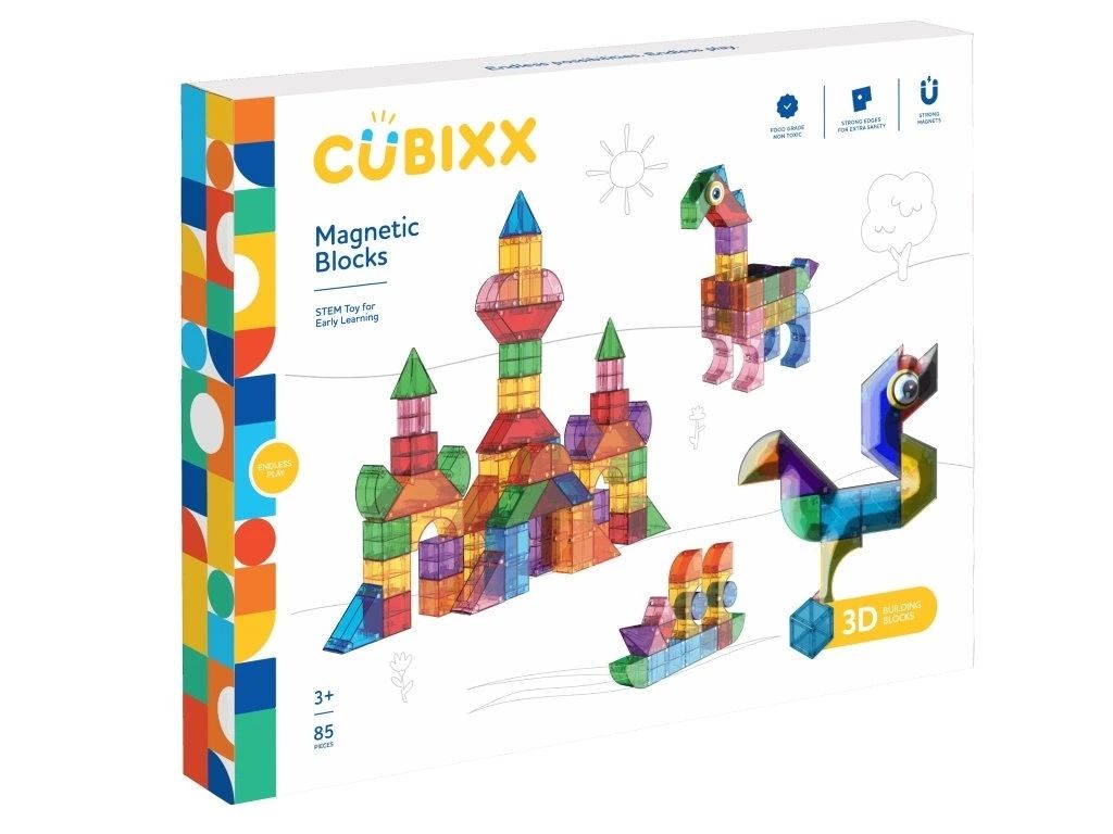 Popustite uzdu svojej fantázii s kreatívnym balíčkom Cubixx! Táto sada obsahuje 85 farebných magnetických kociek v 11 rôznych tvaroch, z ktorých si môžete postaviť čokoľvek, čo si len dokážete predstaviť – od pôsobivých hradov až po zábavné vozidlá. Silné magnety zabezpečujú pevnú konštrukciu aj pre tie najambicióznejšie projekty.